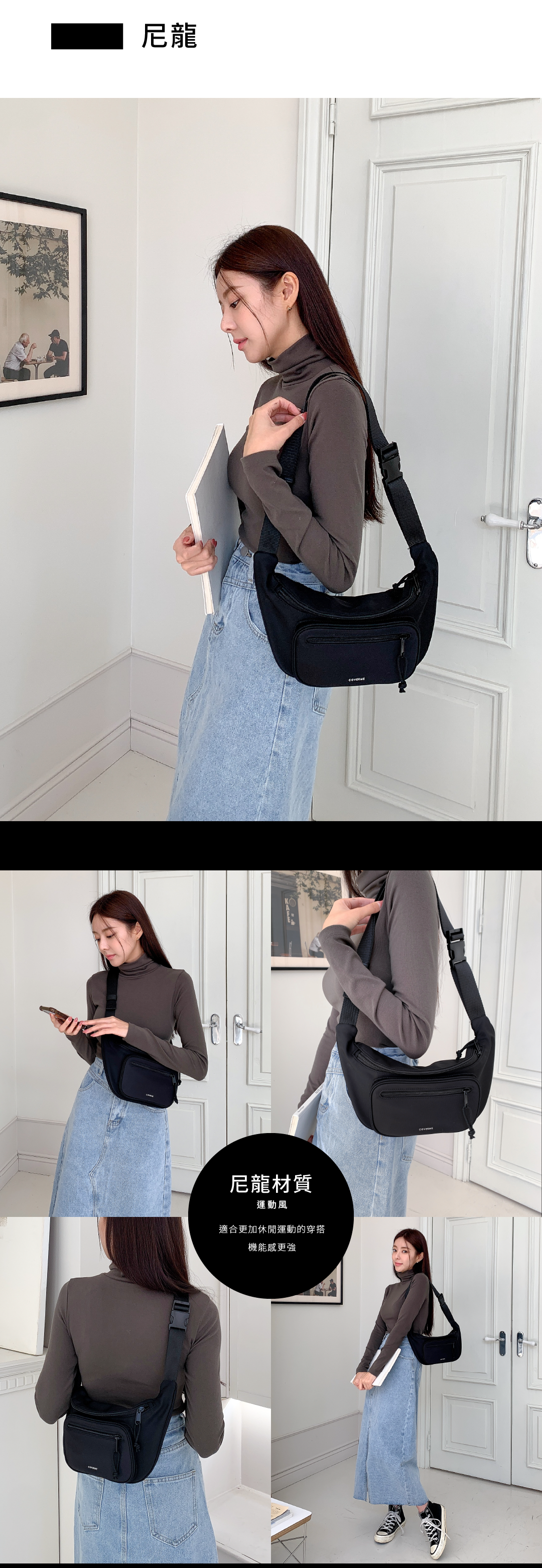 材質:PU純素皮革(防刮荔枝紋) /尼龍材質