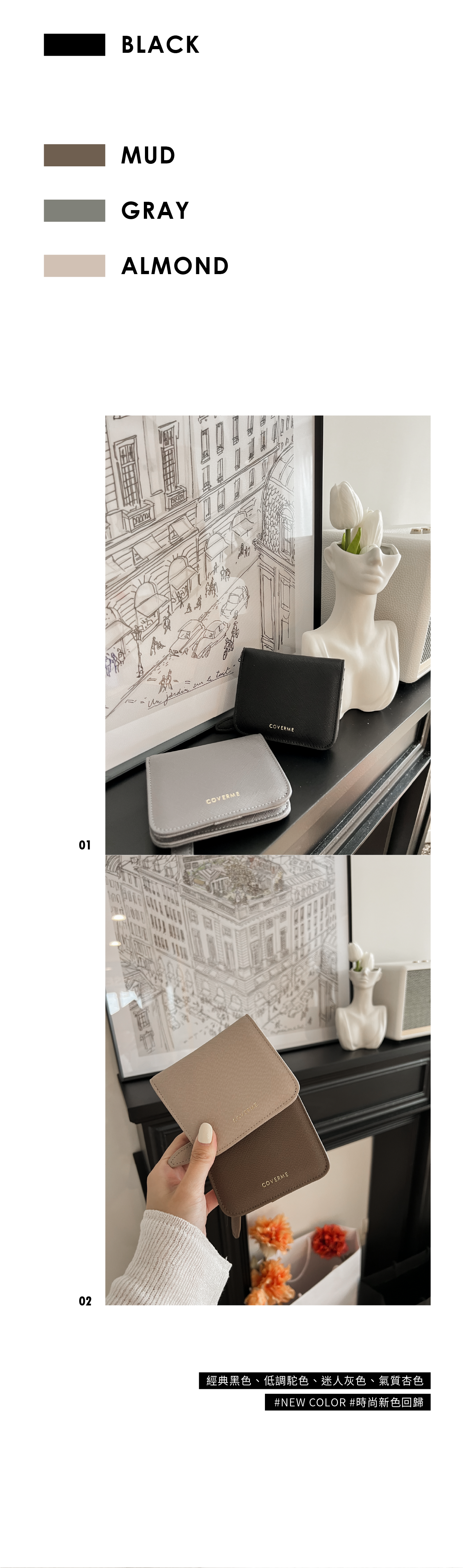 ※拍攝受燈光影響難免有些微色差,實際顏色請參考各色的單品照